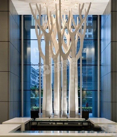 小區大廳室內抽象樹枝不銹鋼雕塑